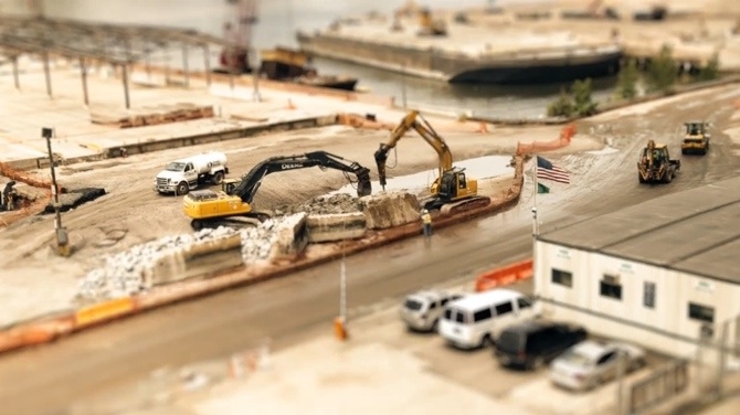 In case you're wondering, Tilt-Shift tricks you into thinking you're looking at a miniaturised world of model cars, buildings and people. It makes things seem smaller by using an unexpectedly narrow depth of field while you shoot from above at a certain, critical angle. It's exactly what you would see if you were to film an actual model, with a normal lens.