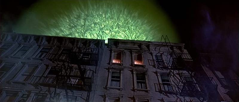 The much-loved 1984 comedy Ghostbusters features all kinds of traditional effects, including the never-to-be-crossed particle streams with which the heroes battle their spectral foes. The streams consist of five layers of traditional cell animation – the same technique used to create, say, a Disney classic like Sleeping Beauty – which were composited and enhanced on an optical printer. (An optical printer is essentially two or more film projectors connected to a camera so that multiple separate elements can be combined into a single shot.) Composited onto the tips of the Ghostbusters’ guns were small explosions and other pyrotechnic effects shot on a darkened stage.